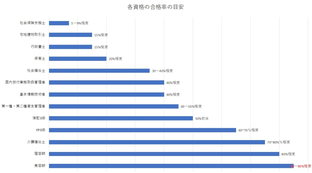 他の資格と比較しても、美容師の合格率が高いのは一目瞭然ですね。