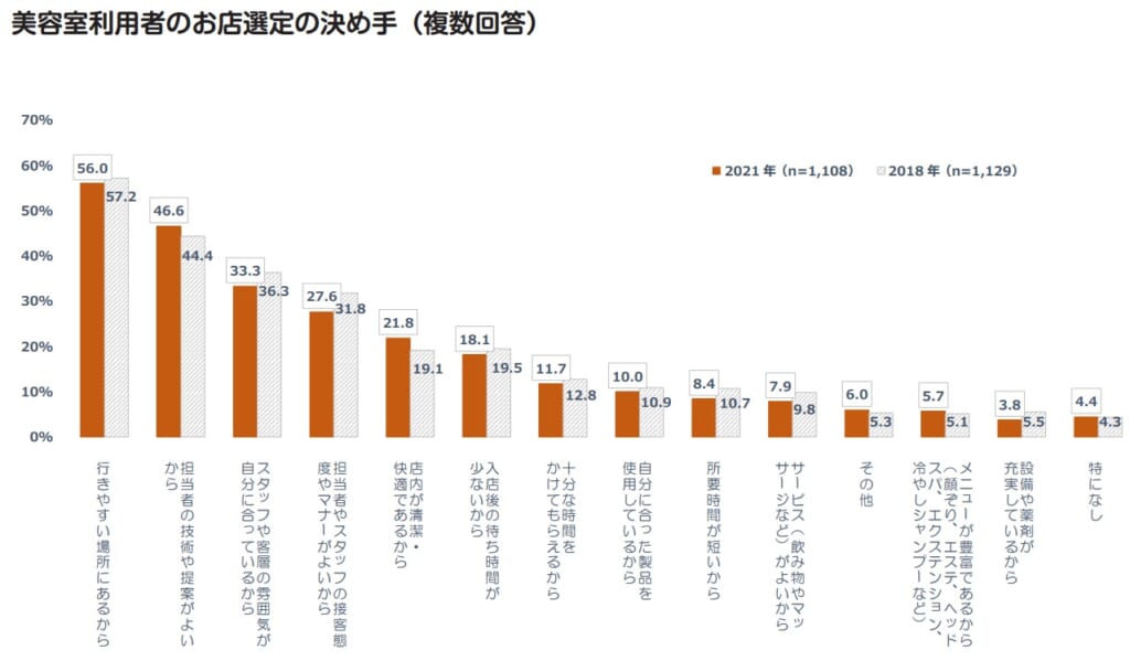 厚生労働省の調査においても、美容室に行くのをやめた理由として「担当者の技術や提案が良くなかったから」という理由は、女性において2位(男性は3位)となっています。