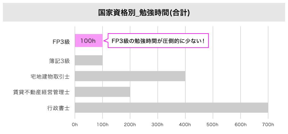 | FP3級は他の国家資格と比較して、試験対策に要する勉強時間が少ない=難易度が低い! |
