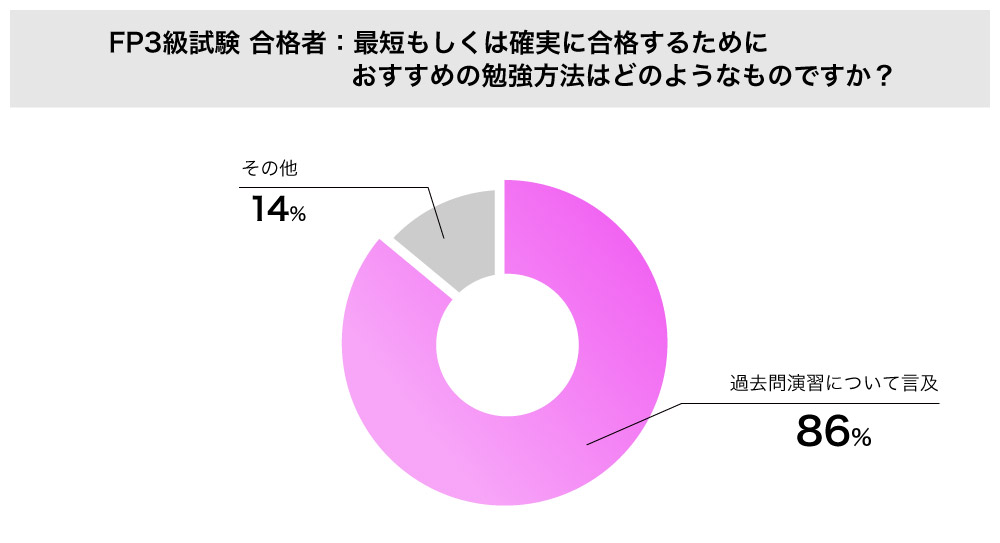 | FP3級試験対策におすすめの勉強法、合格者の8割が「過去問」について言及! |