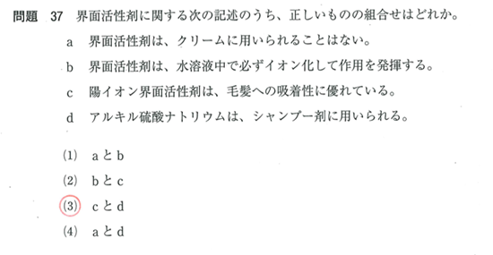 | 香粧品化学 | 従来の理容の物理化学のうちの香粧品化学 | 5問 |